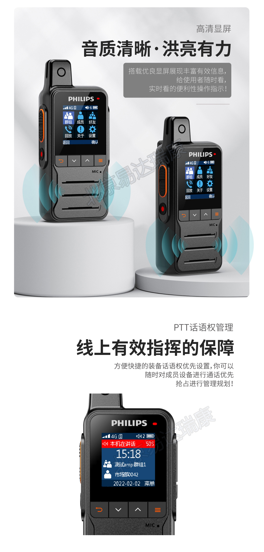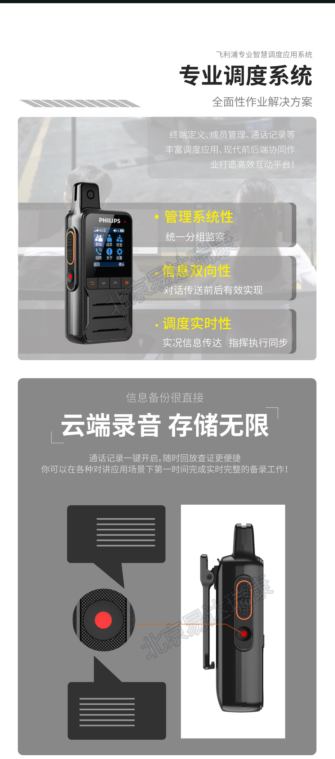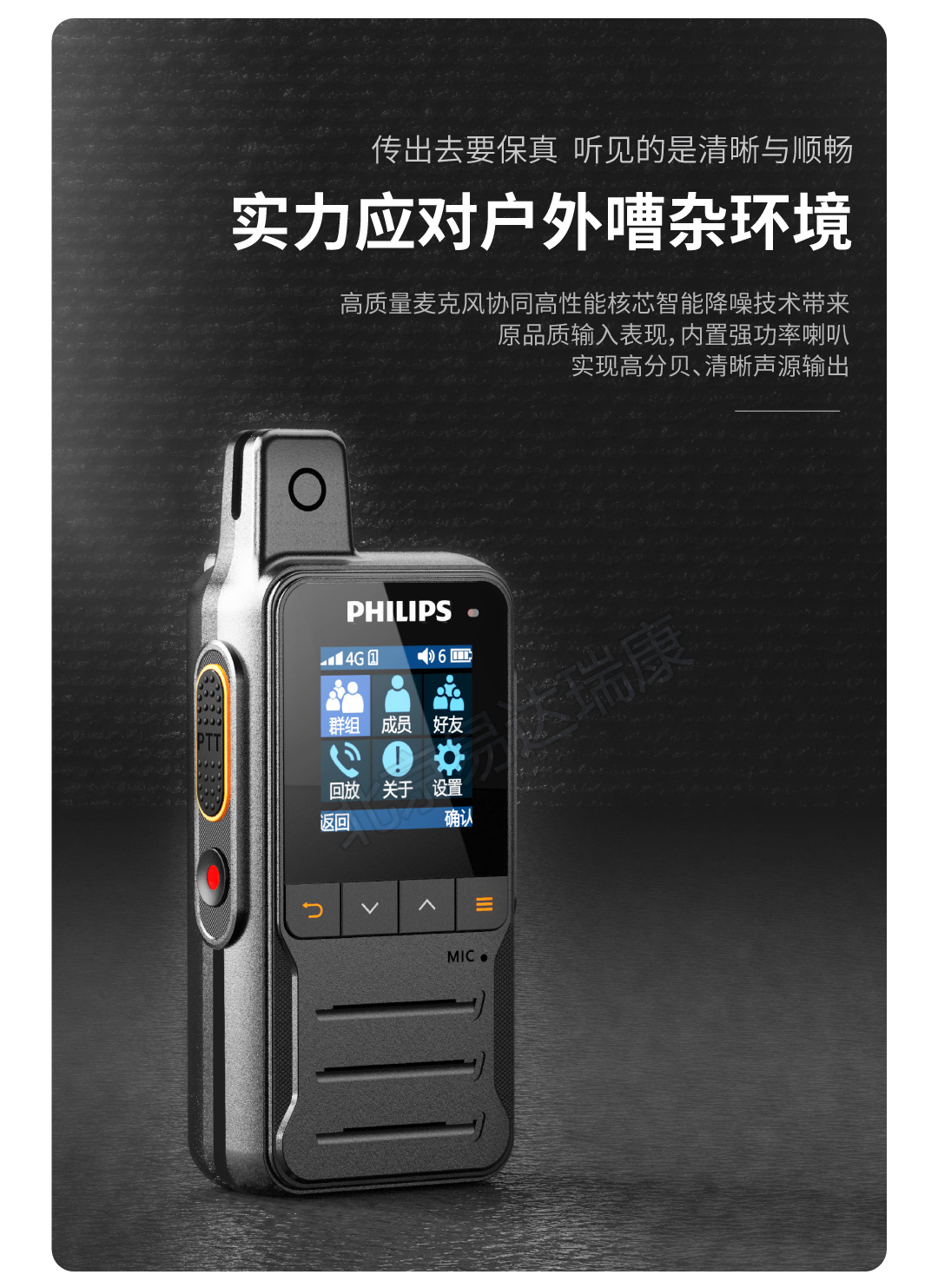 飞利浦公网智慧语音终端: 双卡双待/全国/公网对讲/云端录音/智慧平台高效管理/快捷PTT呼叫/强劲续航/TYPE-C直充/可拆卸电池/ 续航无忧/智能降噪/对讲