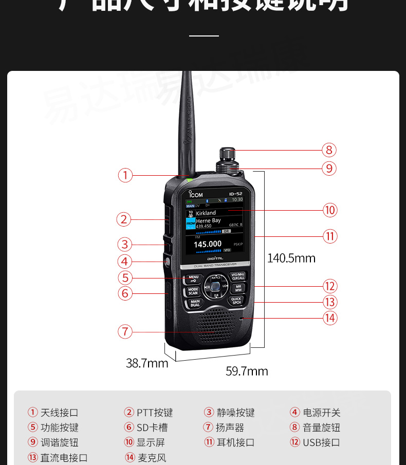 icom艾可慕ID-52E业余双待双显VHFUHF对讲机户外数模适用 [我要报错]