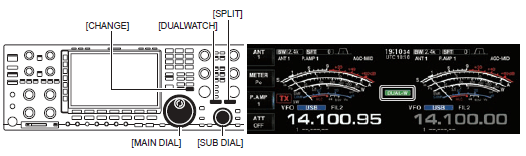 由于IC-7851有两个独立的接收电路,所以可以同时接收两路不同频率,不同模式的信号。显然,因两路同时工作,一般主波段频率波段可以发射,好主次波段频率不一样,甚至可选择不同收发天线以防止相互干扰。