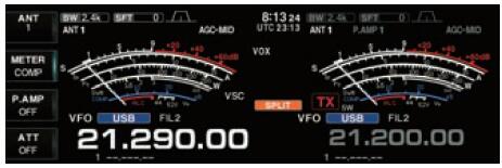 若确需要次波段频率发射,可按动SPLIT键启动差频功能键,此时"TX"标志转到屏幕中间,此段频率就可以发射信号了。