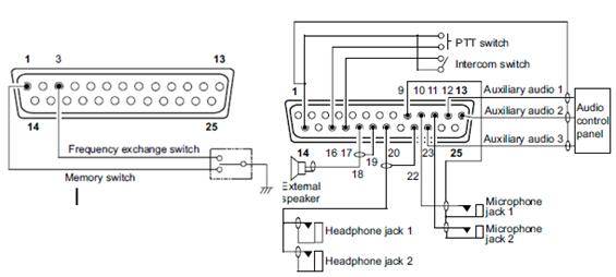 根据工作环境,工作人员工作台面距离电台较远,难以直接操作面板按键,本机提供了通过控制台按触开关控制相关功能的方法,实现了远程操控方法,同时也可以提供外部设备音源的接入等附加服务,为驾驶员提供多方面通信支持。