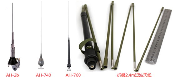短波和天调一体化天线ICOM常见型号如AH-2b,AH-740,AH-760等车载移动天线和2.4m专用背负天线等。它们缩短辐射体到2.4m以下方便移动中使用,同时通过天线调谐器把主机和天馈系统匹配起来,实现移动范围内的动中通要求。