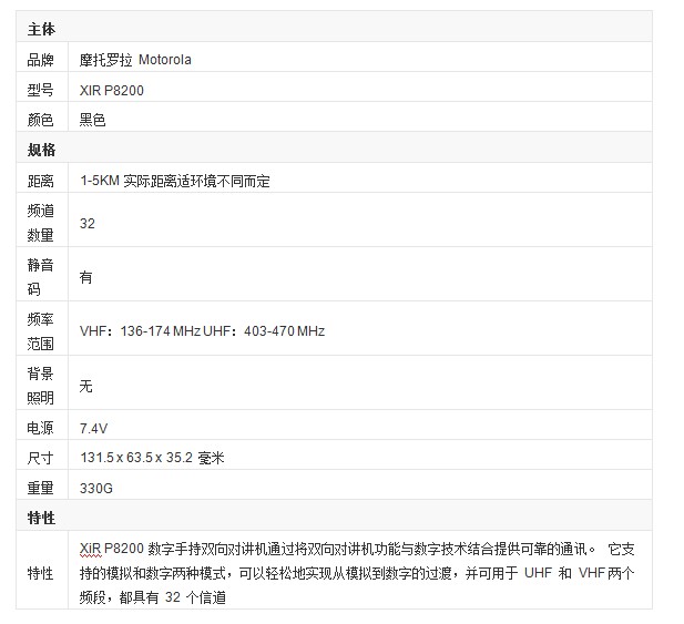 摩托罗拉XiR P8200数字对讲机 [我要报错]