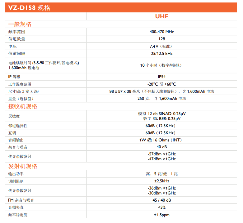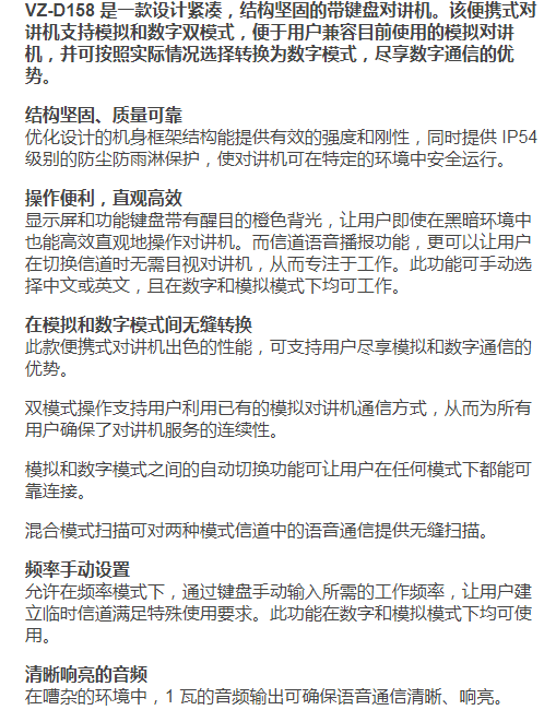 威泰克斯VZ-D158数字对讲机