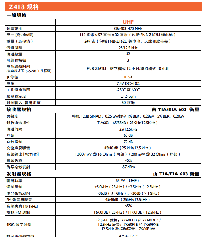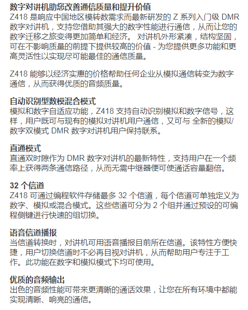 威泰克斯Z418数字对讲机
