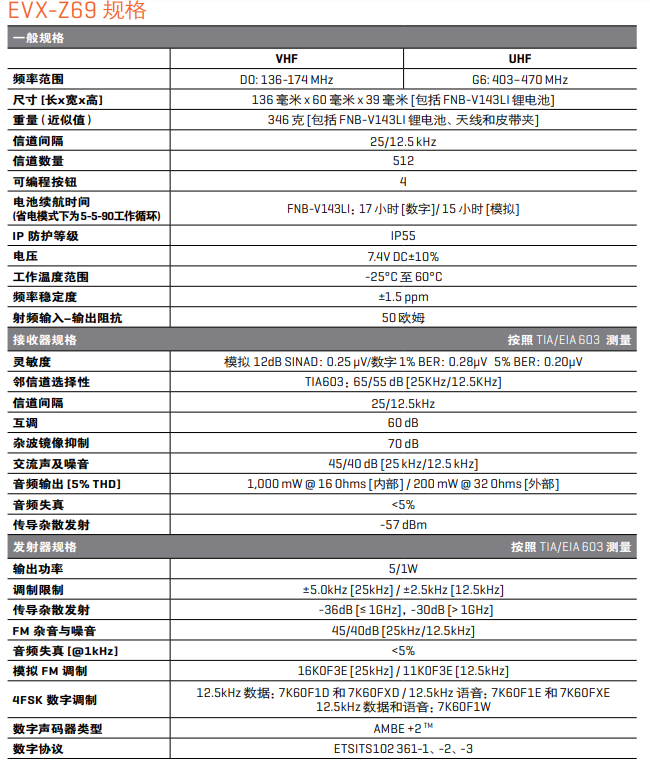 威泰克斯EVX-Z69数字对讲机