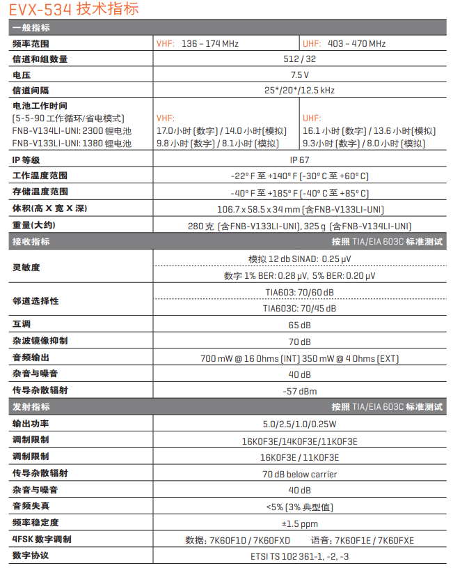 威泰克斯EVX-534数字对讲机