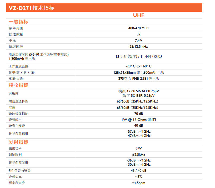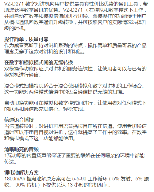 威泰克斯VZ-D271数字对讲机