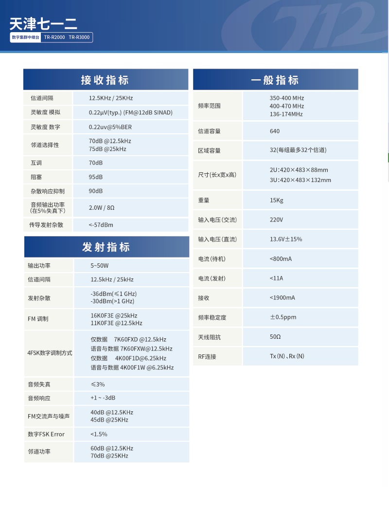天津七一二数字集群多模式2U中继台VHF:TR-R2100,UHF:TR-R2000,350M:TCB-C-500(5) [我要报错]