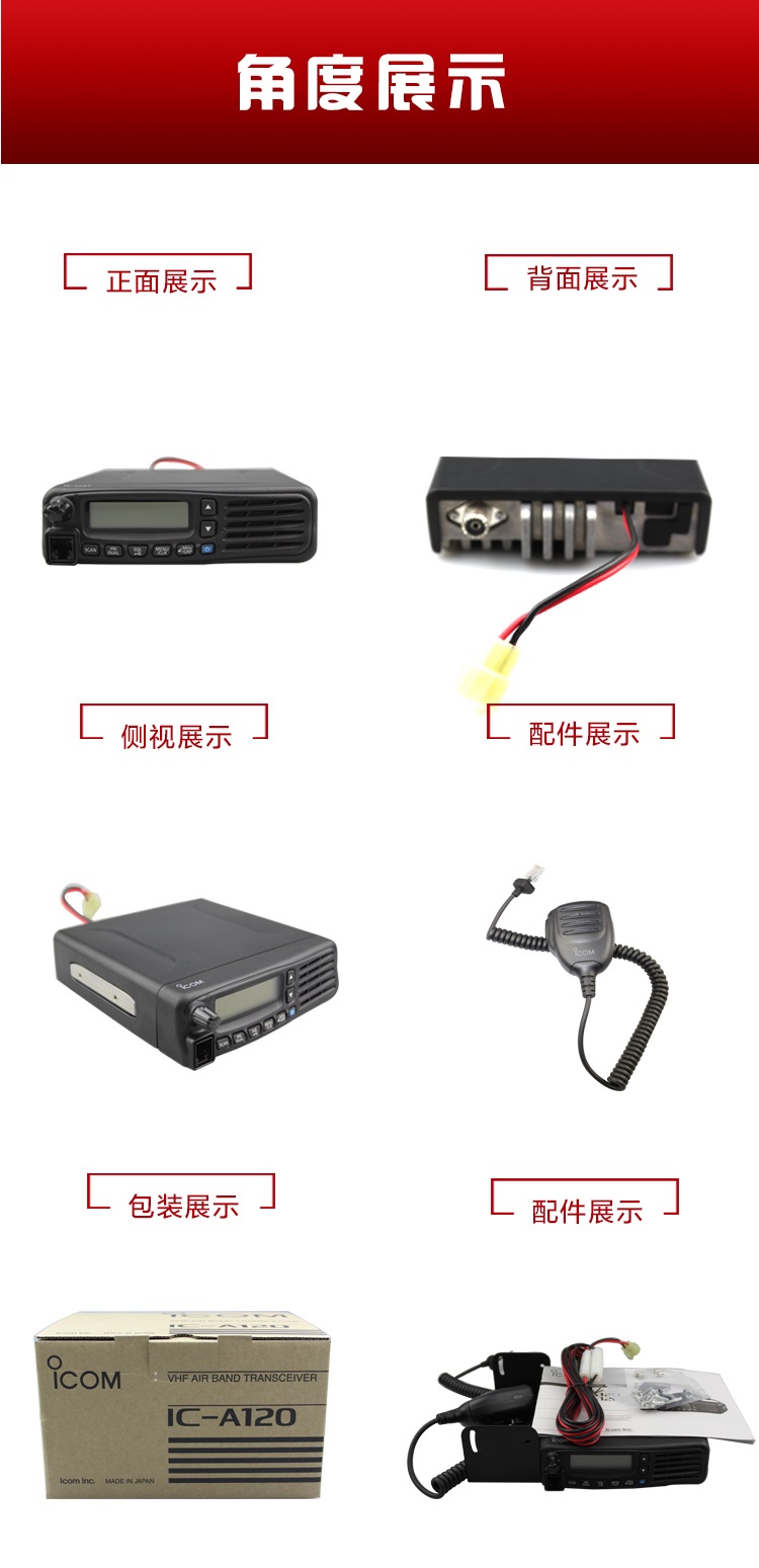 艾可慕ICOM航空对讲机IC-A120机场用车载台对讲机航空电台送天线
