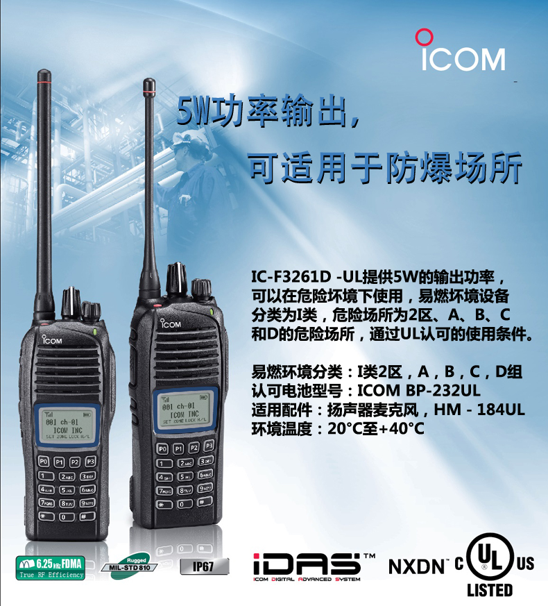 艾可慕ICOM IC-F3261DT-UL数字防爆对讲机