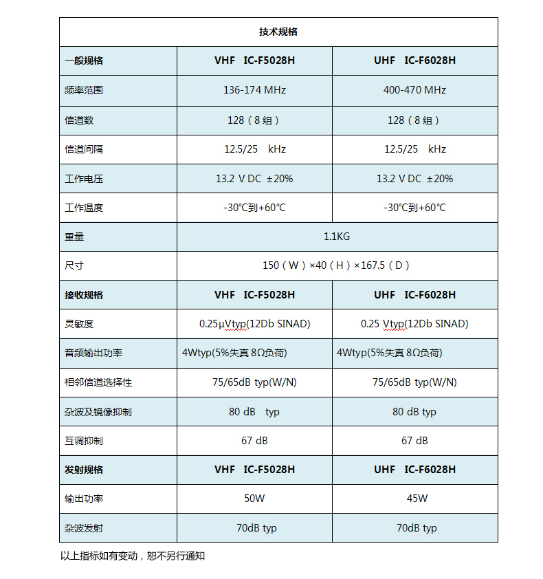 艾可慕ICOM IC-F5028H/F6028H模拟车载台