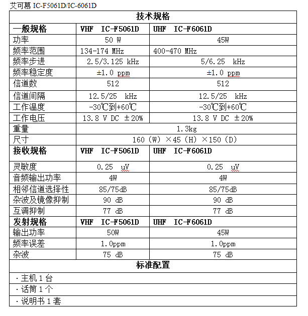 艾可慕ICOM IC-F5061D/F6061D数字车载台 [我要报错]