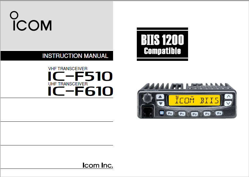 ICOM 艾可慕IC-F510/F610/BIIS2车载电台英文说明书: