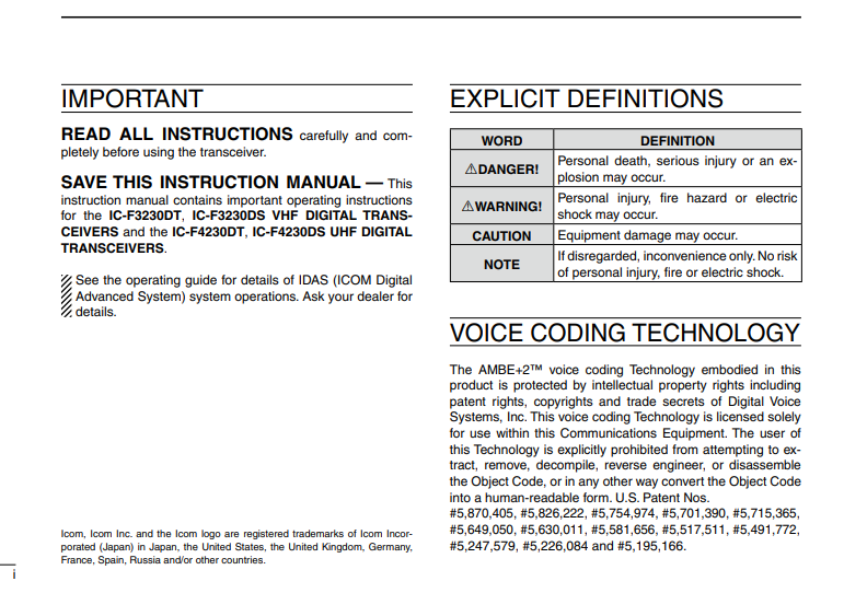 ICOM 艾可慕 IC-F3230D_F4230D_Series_1手持对讲机英文说明书: