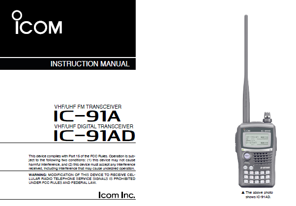 以上是IC-91A/AD/1A业余电台说明书的部分说明,如需查看请回到上方下载。