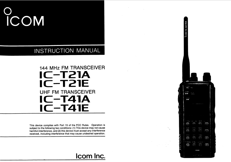 ICOM 艾可慕IC-T21E/T41E手持对讲机英文说明书: