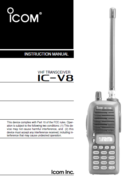 ICOM 艾可慕IC-V8手持对讲机英文说明书: