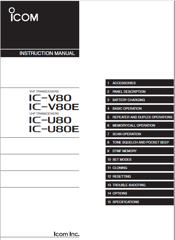 以上是IC-V80/IC-U80对讲机说明书的部分说明,如需查看请回到上方下载。