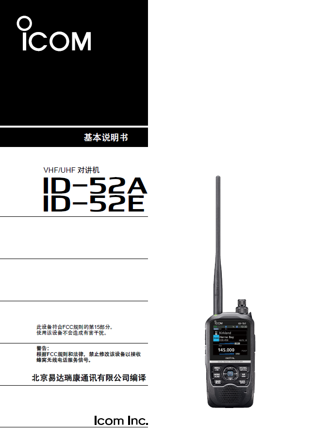 icom艾可慕数字业余对讲机ID-52A/52E中文基本版本说明书
