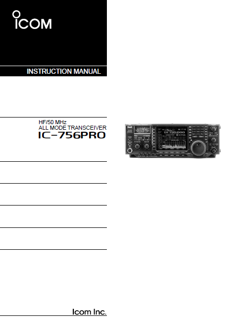 IC-756PRO是一款IC-756的更新技术版本,是一款经典大气的短波电台。安装使用注意要详细阅读使用说明书,如下仅为部分简单介绍