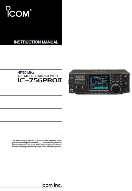 IC-756PROII是IC-756PRO的升级短波电台,功能技术都有提升,是一款值得拥有的短波全模式电台,使用中天线选择,安装和频率选择都是很有讲究的,要根据说明书要求和技术参数指导选择合以取得满意通信效果。在短波使用中多学习,多积累通信经验是晋级通信高手的唯一途径。在普試操作本機之前,訥仔袖地阅遠追本使用說存道本使用說明手冊一這本使用說明手冊包含有IC-756重要的安全事項與操作說明。本使用說明手冊一這本使用說明手冊包含有IC-756重要的安全事項與操作說明。在做移動通訊的時候,不要在弓|擎未發動的情況下操作無線電收發機。在做海事移動通訊的時候,請將無線電收發機與麥克風盡量遠離導航磁羅盤以避免錯誤指示。小心!如果接有線性功率放大器,調整無線電收發機的射頻輸出功率低於線性功率放大器的大輸入功率值,否則,線性功率放大器會因而損壞。千萬不可將無線電收發機暴露在雨水.雪水或任何液體中。千萬不可讓小孩子玩弄無線電收發機。
