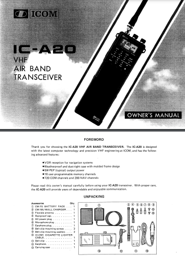 IC-A20对讲机是一款经典的手持航空电台,工作在规定的航空波段,使用中强调如下。