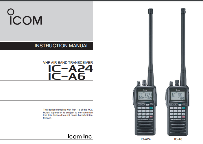 IC-A24对讲机是一款经典的手持航空电台,工作在规定的航空波段,说明书强调如下。